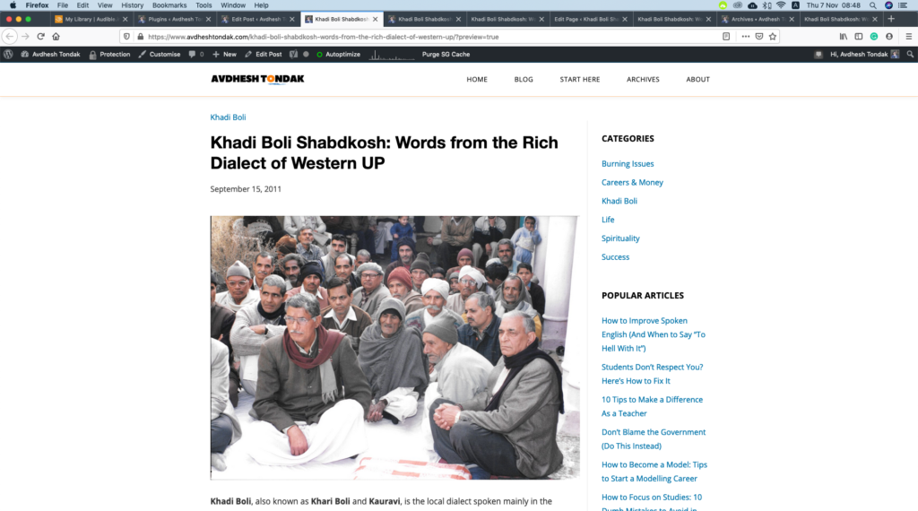 Although the website was officially launched on 5 November 2019, the work began much earlier. Since 2011, I have been collecting, organising, and sharing Khadi Boli words and observations on my personal website.